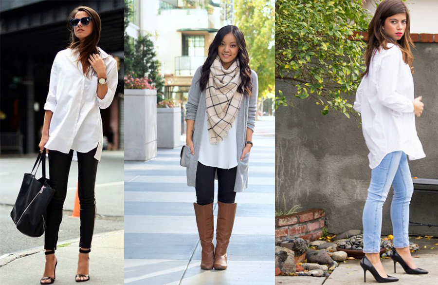 ترکیب یک شومیز سفید بلند و یک شلوار جین جذب روشن و یا شلوار کتان مشکی به همراه کفش پاشنهدار مشکی استایل شما را بسیار زیبا و ساده جلوه میدهد. همچنین در فصل پاییز میتوانید یک شومیز بلند را با یک بافت زیبا و چکمه ترکیب کنید و یک استایل منحصر به فرد ایجاد کنید.